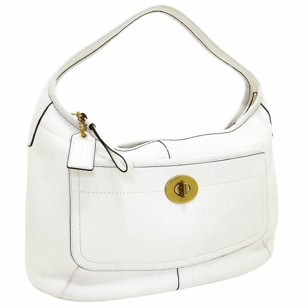 - 15932 コーチ ワンショルダーバッグ レザー ホーボー 革 ホワイト 白 11613 COACH ターンロック