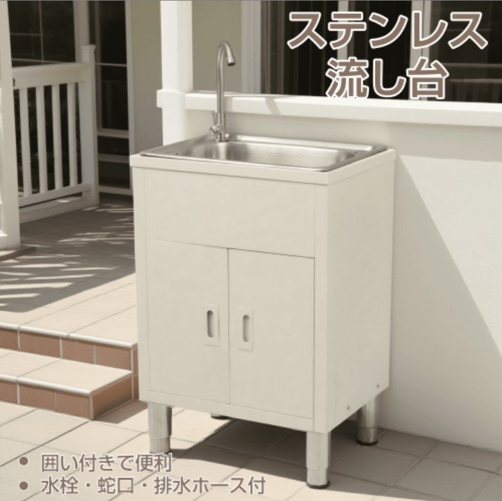 > 【国内発送】ホワイト 流し台 屋外 ステンレス 水栓付 蛇口付き シンク アウトドア 幅広 水栓付き キッチン 屋外用 ステンレス流し台 ステ