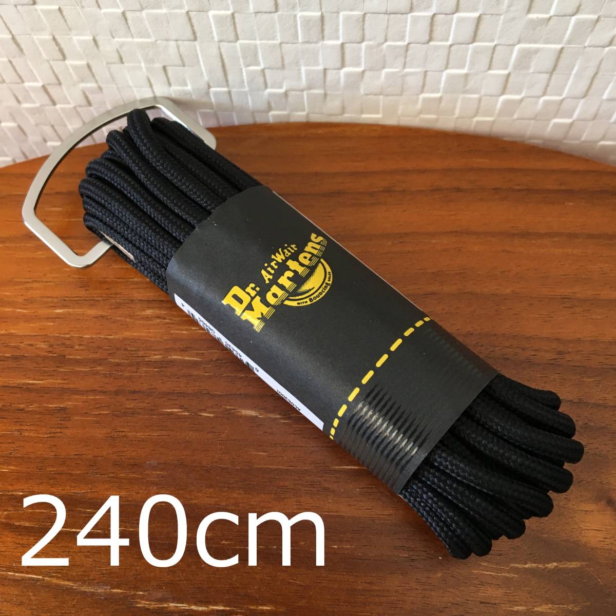 > ● 送料 ¥180 ● 240cm 黒 ブラック 丸紐 紐 Dr.Martens ラウンドシューレース ドクター.マーチン ロングブーツ 20ホール (新品)(正規品)