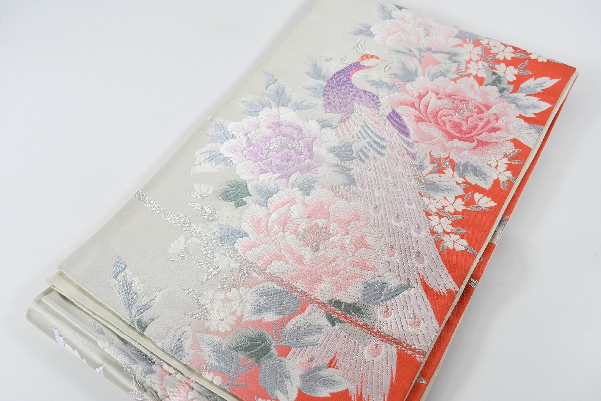 - 袋帯 六通柄 孔雀 牡丹 花 帯丈422cm ★着物屋 ne-16503 桜庭呉服店