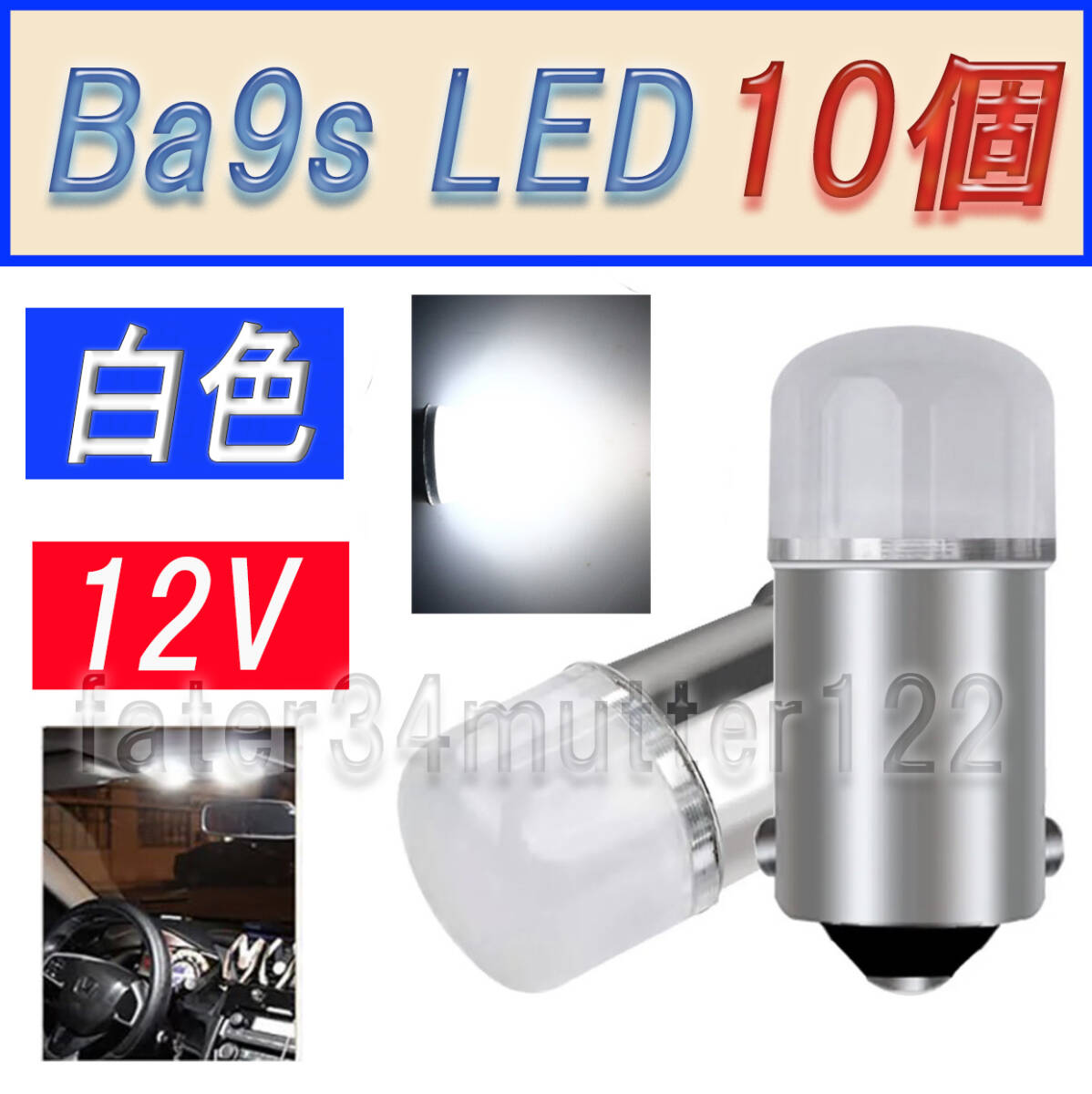 - BA9S LED 白色 DC12V 10個マーカー 室内灯 メーター インジケーター等へ