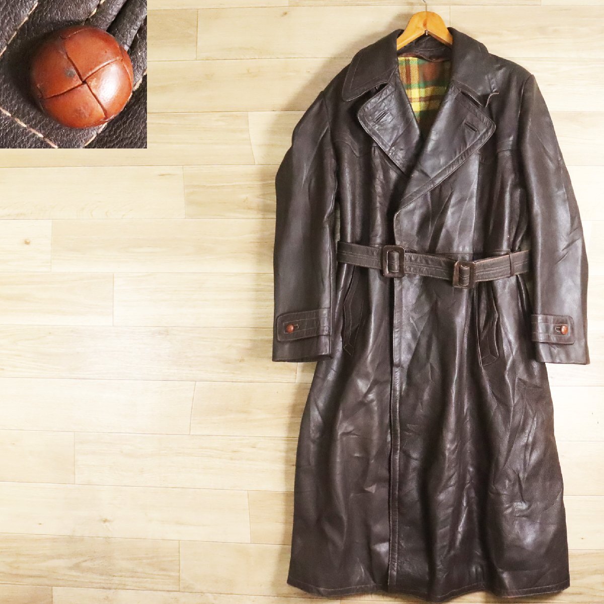 > #6S/S5.27-2 ユーロ古着 モーターサイクルコート 本革 レザーコート ベルト付き ライダース メンズ ダークブラウン ヴィンテージ