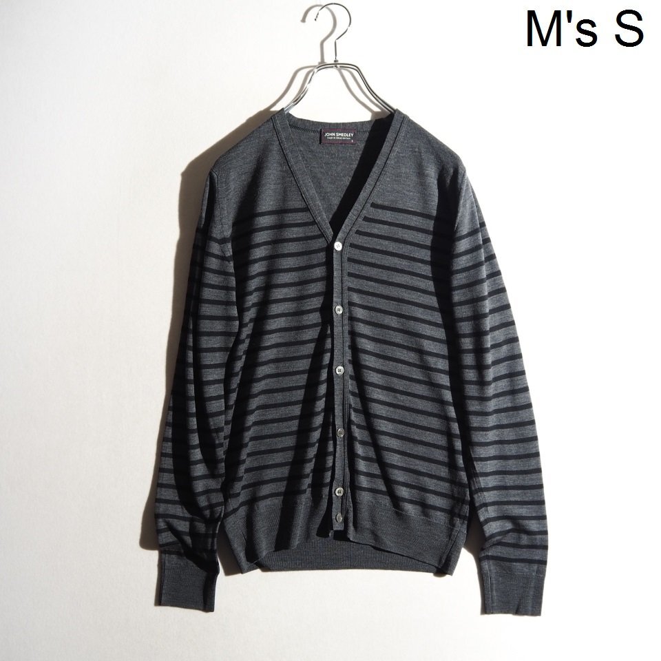 > C4669P ▼JOHN SMEDLEY ジョンスメドレー▼ ハイゲージ ウール ボーダーニット カーディガン グレー ブラック S シーズンレス rb