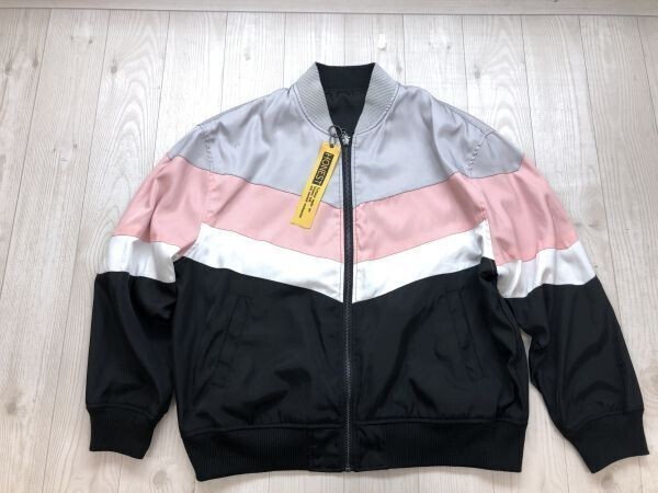 - Private Pause しまむら ストリート スポーツ K-POP 古着 配色切替 ブルゾン ジャケット レディース リバーシブル M 黒 白 ピンク