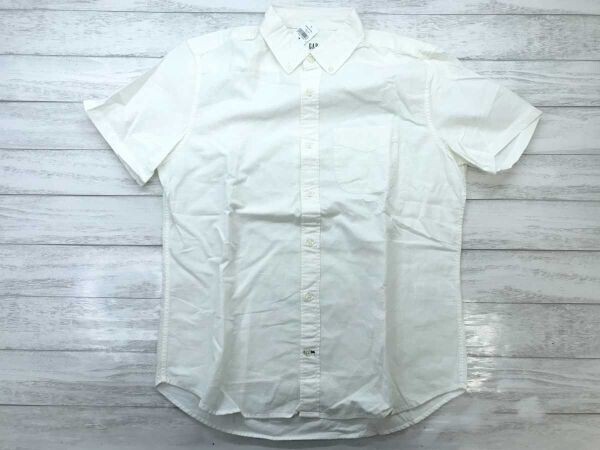 > 新品タグ付き ギャップ GAP レトロ アメカジ 胸ポケット ボタンダウン 半袖シャツ メンズ リサイクルコットン100% M 白