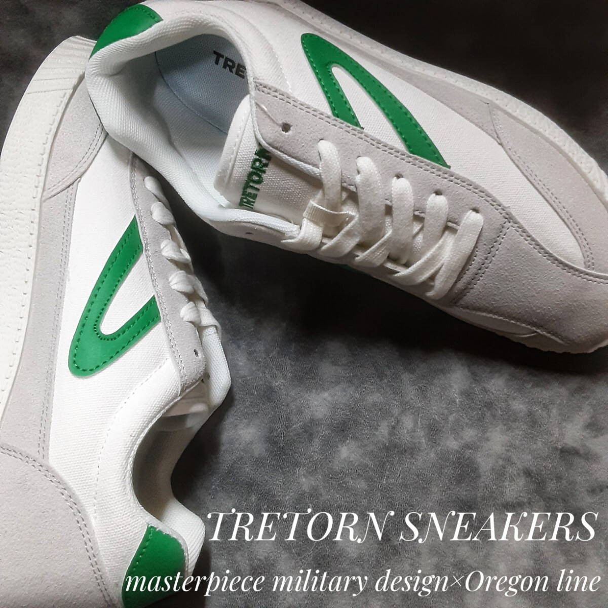 - 最値!新品!1891年スウェーデン発!名作ミリタリーデザイン×オレゴンライン!トレトン(TRETORN)スニーカー!ホワイト×グリーン!白緑 26.5cm