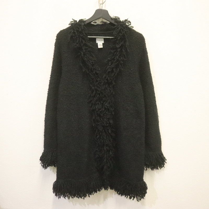 > h883 2000年代製 CHICO’S アクリルニットカーディガン フリンジ■00s 表記2 ブラック アメカジ ストリート 古着 激安 レディース 希少