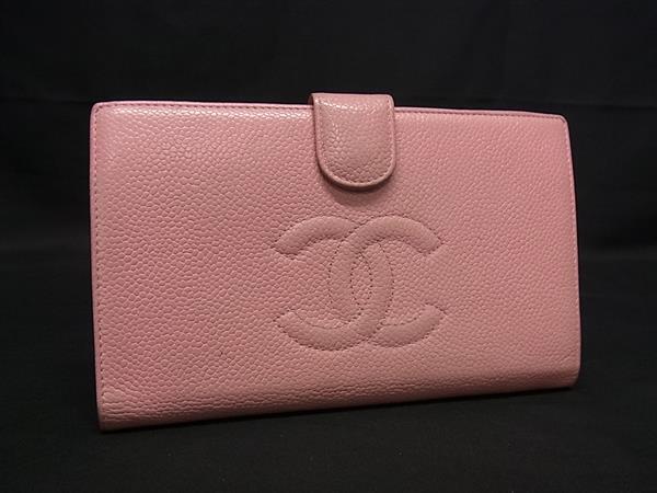 - 1円 CHANEL シャネル ココマーク キャビアスキン がま口 二つ折り 長財布 ウォレット レディース ピンク系 FR6585