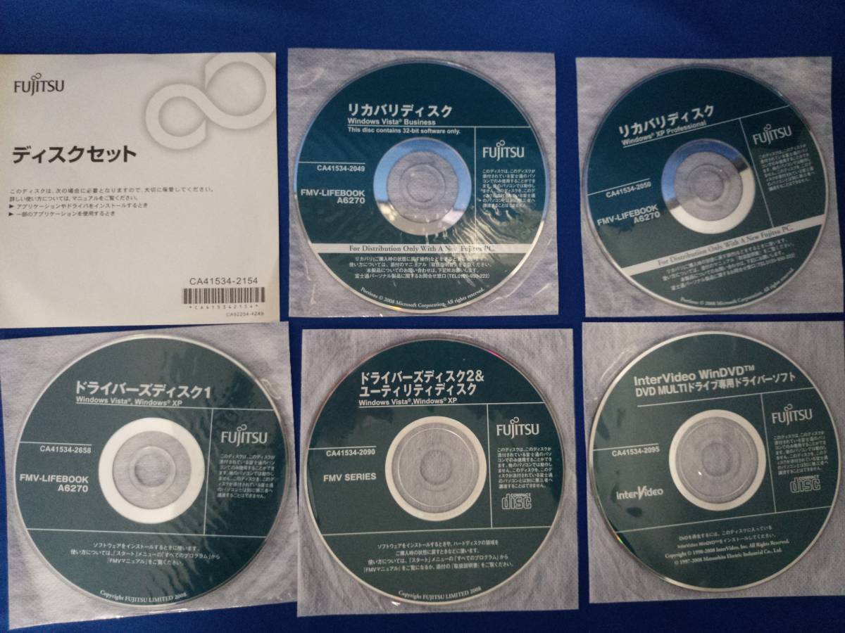 > FUJITSU LIFEBOOK A6270用 リカバリディスク Windows XP/Vista winDVD付