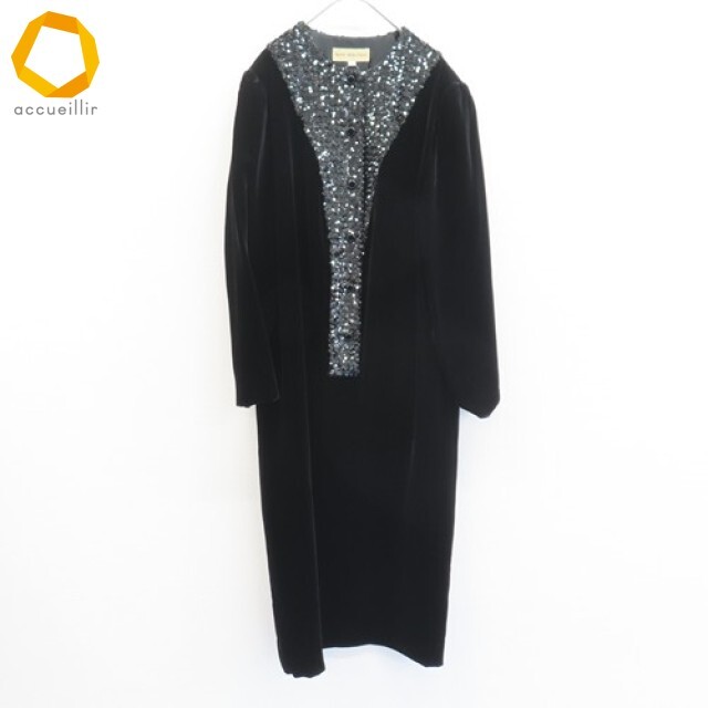 > ハナエモリ HANAEMORI ヴィンテージ ワンピース ロング フォーマル スパンコール デザインボタン [x965706]