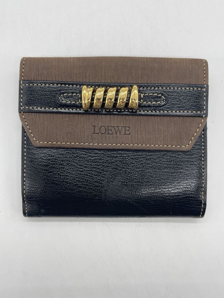 - 【1円スタート】LOEWE ロエベ 二つ折り財布 レザー×スエード ゴールド金具 MADE IN SPAIN ヴィンテージ 希少