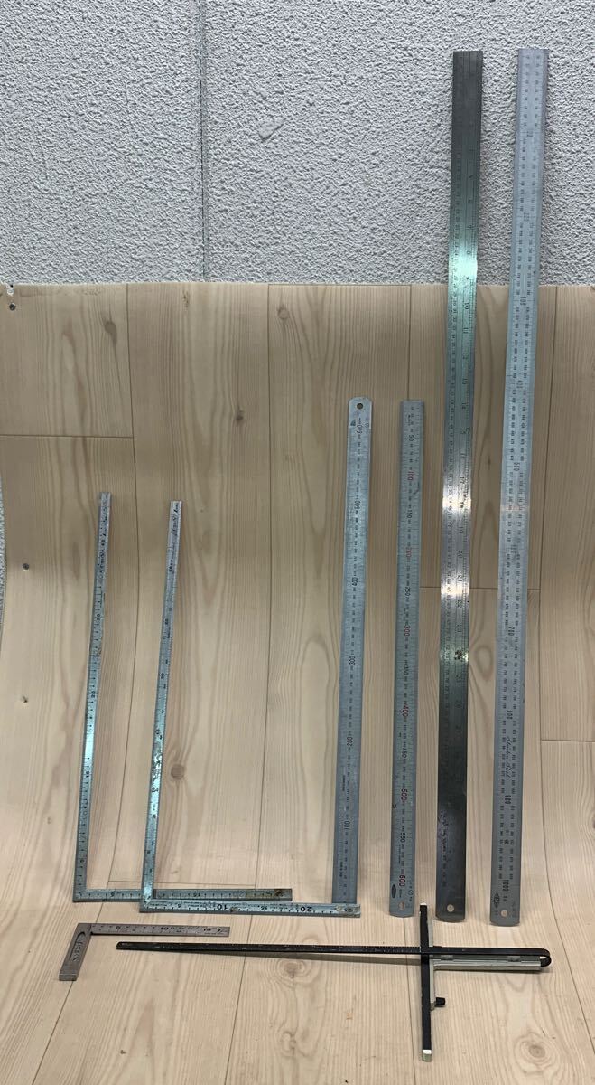 > N944 SD-251024-2117 大工道具 定規 曲尺 差し金 T定規 直尺 物差し シンワ 特選 マルバ 600mm 50mm 1m 丸目 8点 まとめ売り