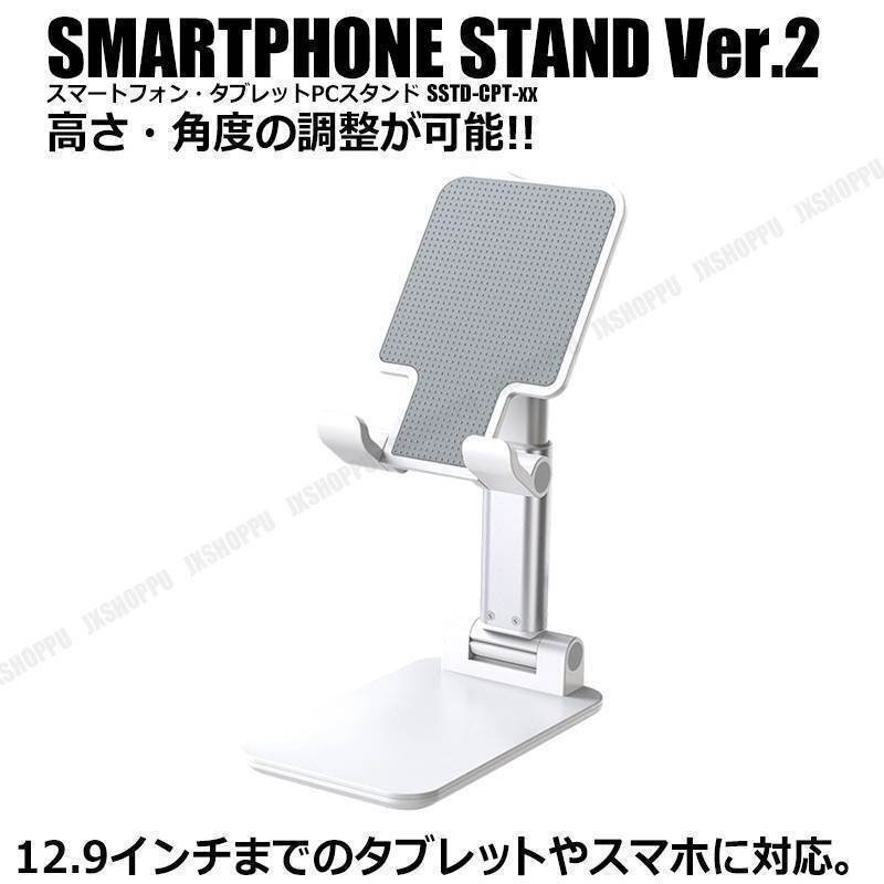 > 送料0円 最新 スマホスタンド 【改】 超重量級 安定性向上 [ホワイト] ~12.9インチのタブレット対応 伸縮 折りたたみ 角度 高さ 調節