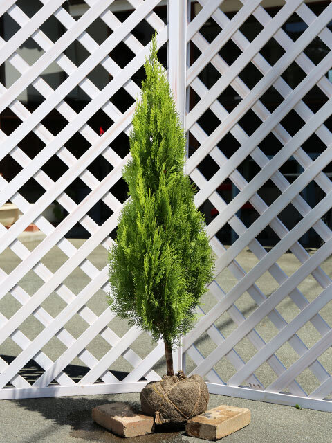 エレガンティシマは上に高く伸びます。剪定を繰り返し行うことでしまったスマートな樹形になります。近年人気のコニファーで基本色の緑色をだすのに良く使われています。