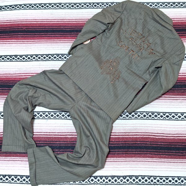 - 唯一無二の一点物◎【DURBAN】ダーバン スーツ 上下 セット ダブル タック スラックス パンツ ジャケット ベトジャン刺繍入り 茶系/Y37691j