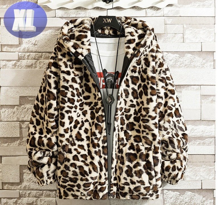 - パーカー ヒョウ柄 カラーB サイズXL アウター 暖か 防寒 n707