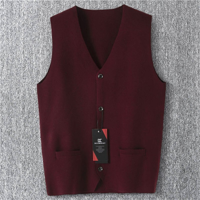 - 新品 DCKMANY 上品 ウール混 前開きベスト 袖なし ベスト メンズ Vネック ベストカーディガン ニットベスト 無地 秋冬 暖かい 赤 T5150-M