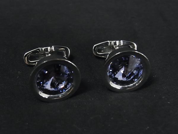 > ■美品■ SWAROVSKI スワロフスキー カフリンクス カフスボタン アクセサリー メンズ シルバー系×パープル系 DK5997