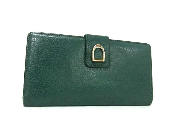 > GUCCI オールドグッチ 035・922・0820 ヴィンテージ レザー 二つ折り 長財布 ウォレット 札入れ 小銭入れ レディース グリーン系 DI8047