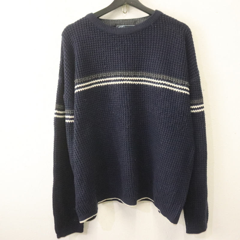 - r507 90sビンテージ POINTZERO アクリルニットセーター■1990年代製 表記Lサイズ ネイビー 紺 ボーダー アメカジ 古着 激安 古着卸