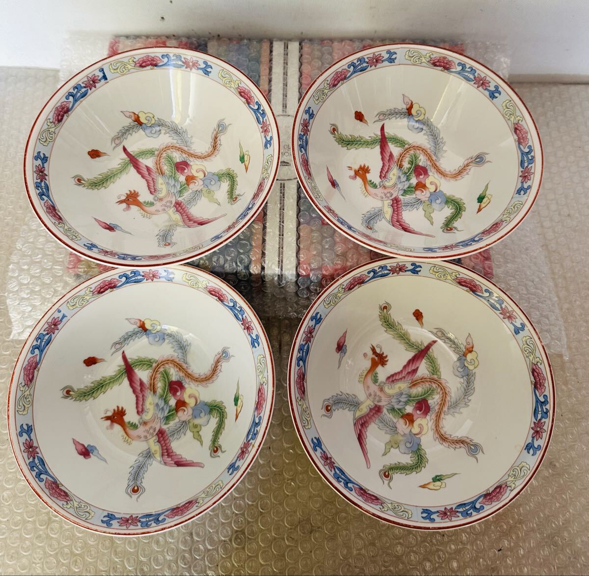 - 昭和レトロ ラーメン鉢 ラーメン皿 中華食器 中皿 鳳凰 4点セット【中古品】