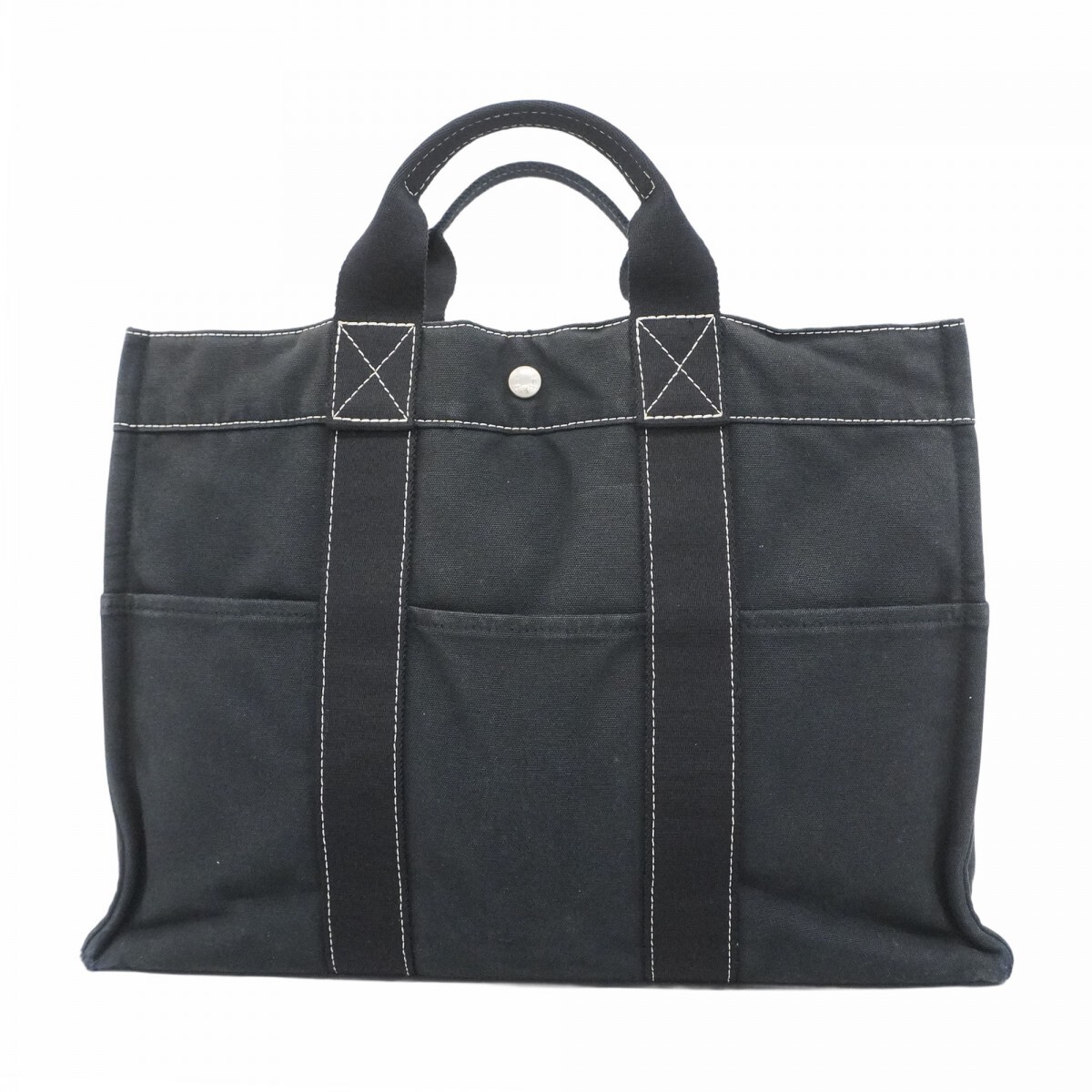 - 【5ob0290】エルメス トートバッグ ドーヴィルMM キャンバス ブラック シルバー金具【中古】レディース