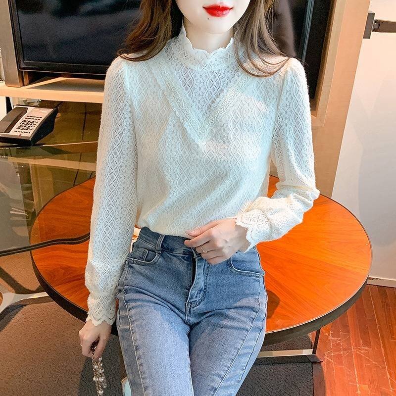 - 長袖トップス 長袖ブラウス 長袖トップス レース きれいめ レトロ かわいい 【大きいサイズあり】 S オフホワイト