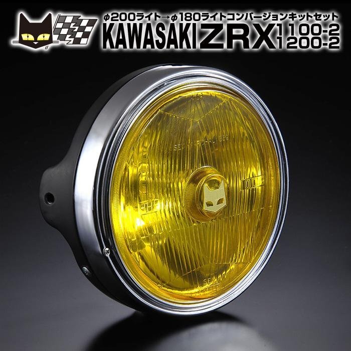 > マーシャル889 ZRX1100-2 ZRX1200-2 φ200ライトに装着 イエローレンズ 黒ケース 汎用フルキットセット 8015/6038