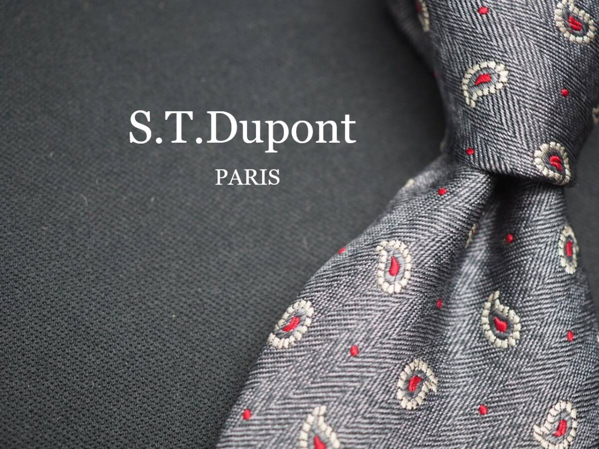- 美品【S.T.Dupont デュポン】 G1106 グレー SILK ブランド ネクタイ 古着 良品 転売 仕入