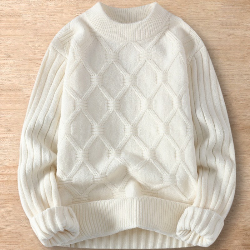 > Y111-M 白 新品DCKMANY セーター フィッシャーマンニット ウール混 厚手 暖かい 冬 プルオーバー メンズ ケーブル編み 無地 トップス