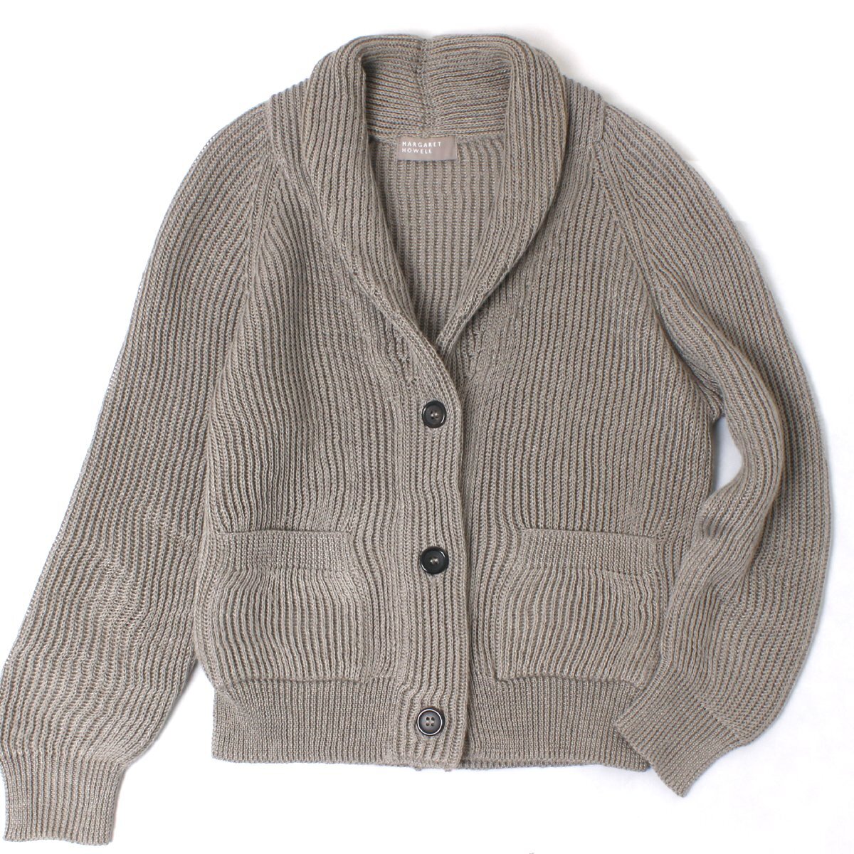 - MARGARET HOWELL ショールカラー リネンカーディガン 定価35,200円 size2 グレー 578-9164002 マーガレット ハウエル