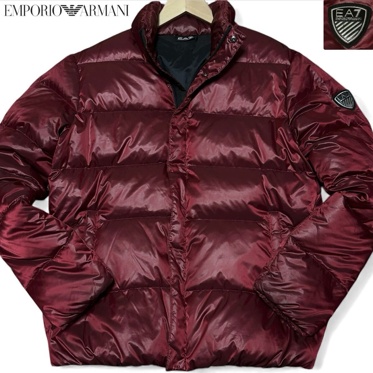 > 極美品/Lサイズ●エンポリオ アルマーニ 極暖 ダウンジャケット ブルゾン ダブルジップ ストレッチ EA7ロゴパッチ 赤 黒 EMPORIO ARMANI