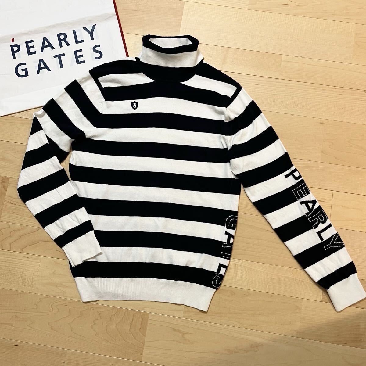 > ★美品 パーリーゲイツ カシミヤタッチ ボーダー柄 ハイネック タートルネックニット セーター メンズ ★送料無料 正規品
