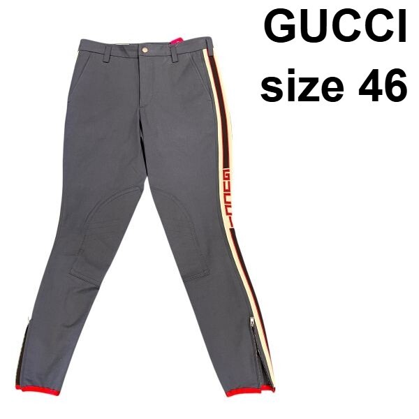 > ● グッチ GUCCI パンツ ボトムス ストレッチ サイドライン グレー コットン 46 170/74A S~M メンズ S5W253