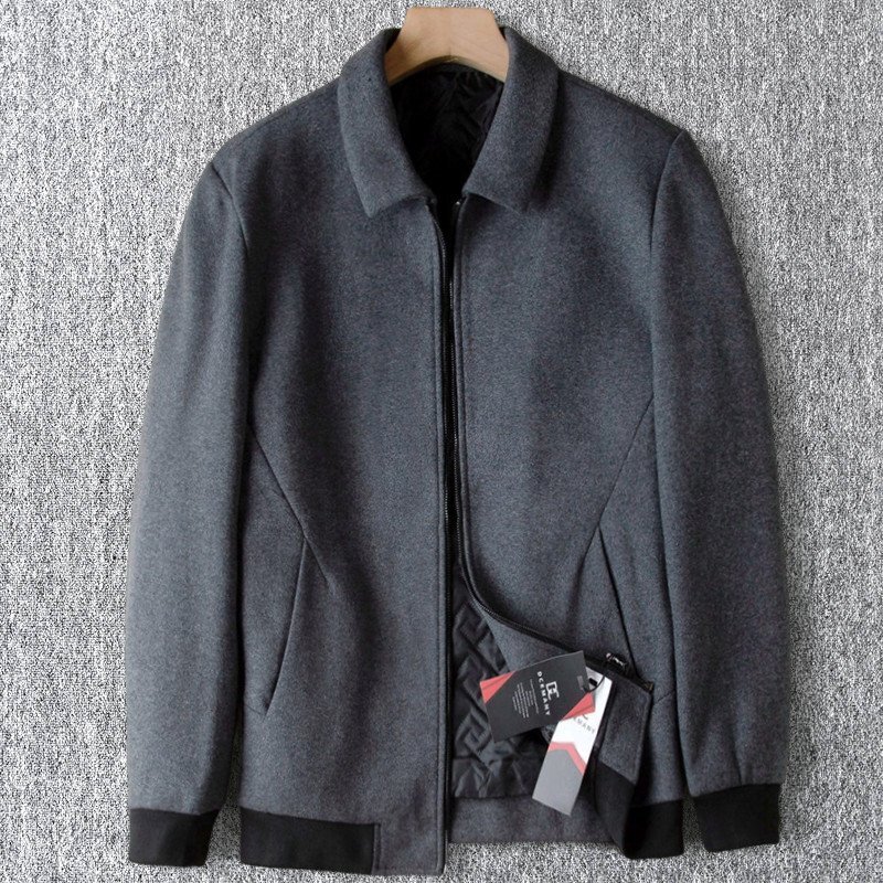 - 新品 DCKMANY ウール中綿ジャケット 毛織 防寒 ツイード風 メンズ ラペル付き 紳士 ファスナー アウター 秋冬 厚手 ビジネス 灰 T9039-3XL