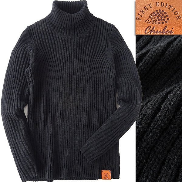 - 新品 CHUBEI チュウベイ ウール混 タートルネック リブニット M 黒 【CH434128_99_M】 ウォッシャブル 秋冬 メンズ セーター ミドルゲージ