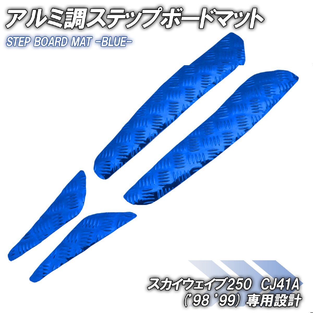 > アルミ調 ステップマット スズキ スカイウェイブ250 CJ41A 98年 99年 タイプ1 タイプ2 リミテッド用 スクーター ドレスアップ 青 ブルー