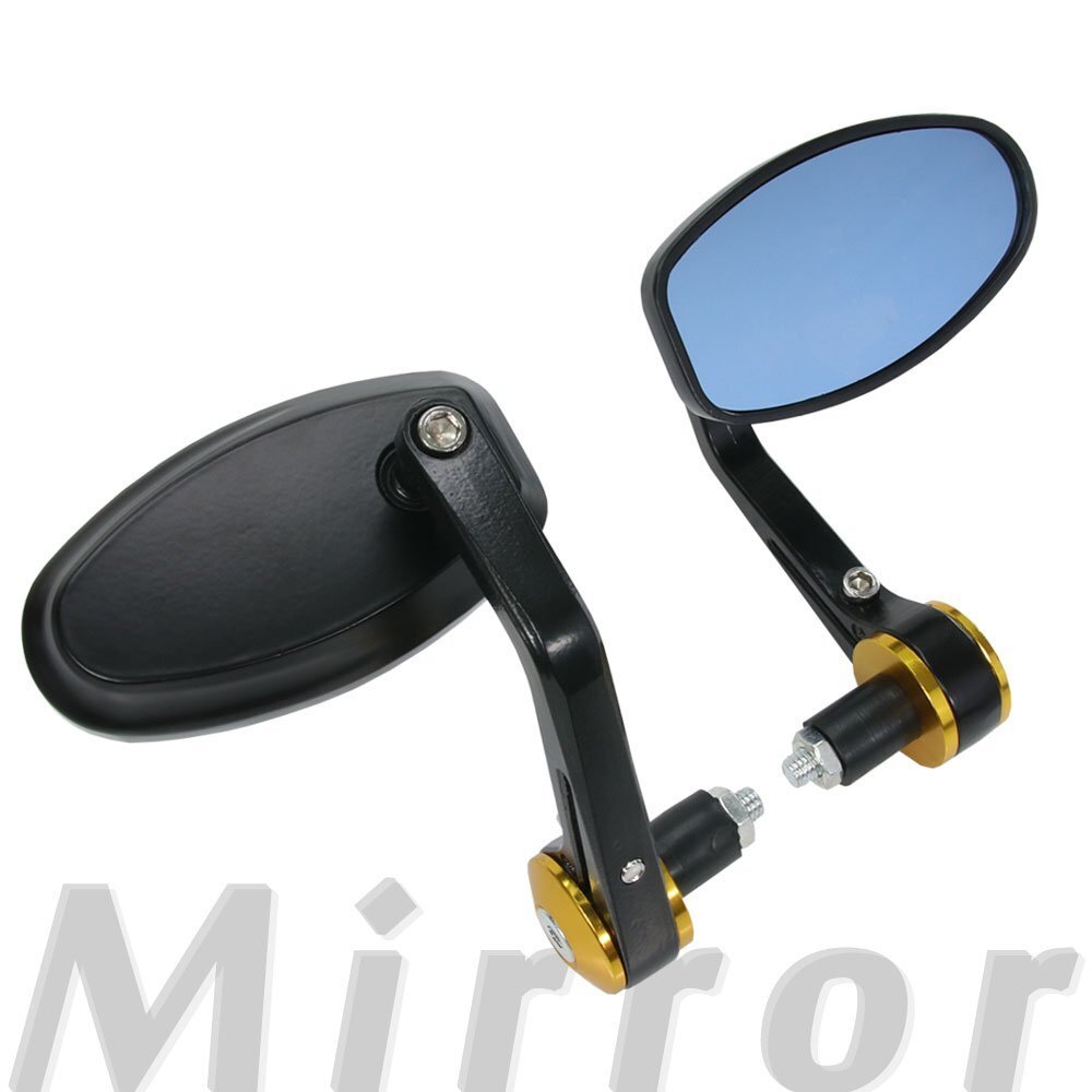 汎用 オーバルバーエンドミラー ゴールド マットブラック 左右セット ブルーレンズ バンディット Vストローム GSR250 GSX1400 バンバン