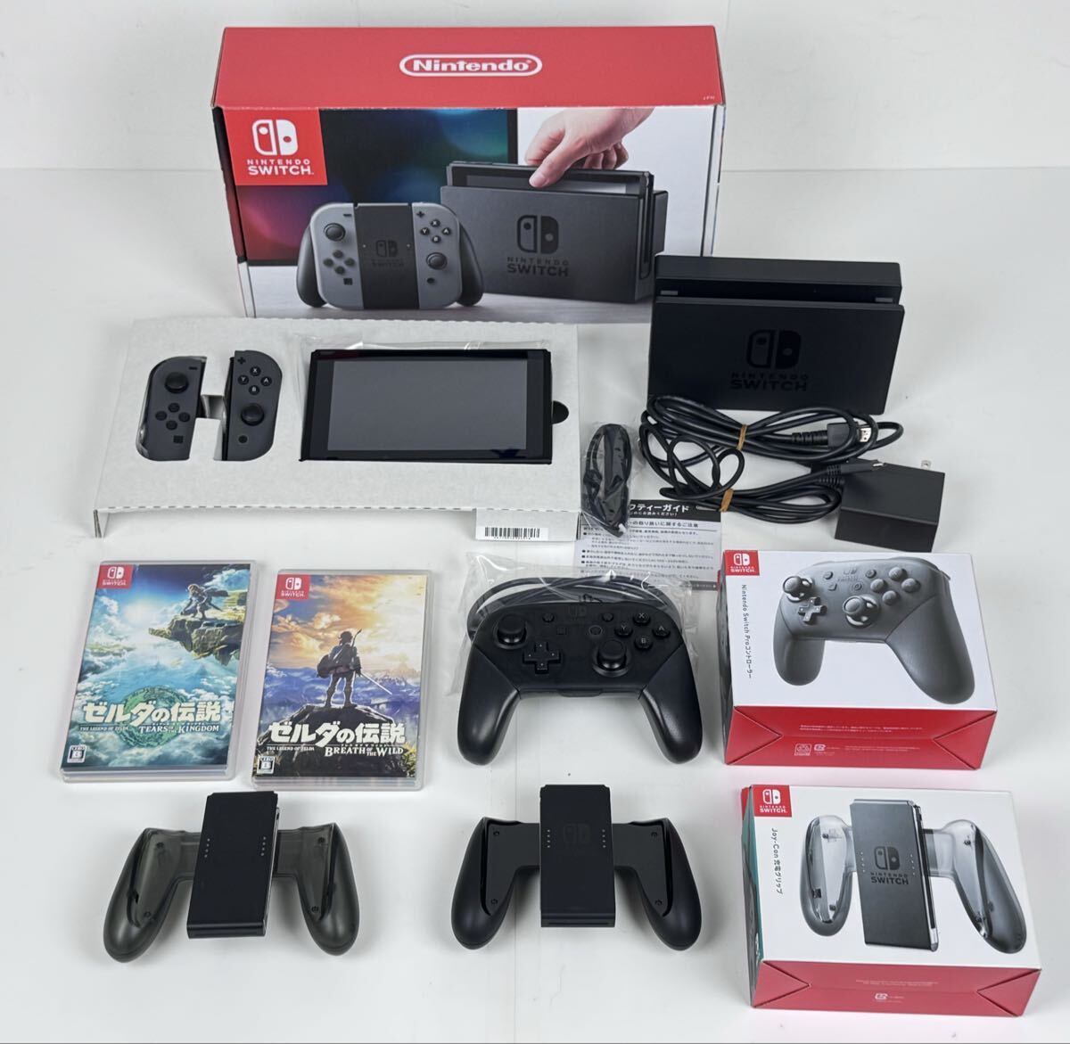 > AZ-436 Nintendo Switch HAC-001 初期化済み スイッチ 本体 ソフト 動作品 ゼルダの伝説 2本 まとめ 箱付 任天堂 ゲーム 充電グリップ