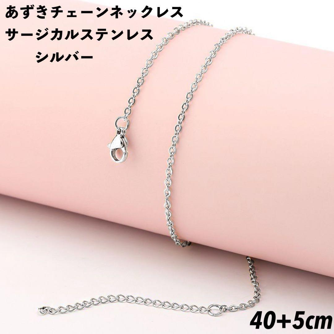 - サージカルステンレス あずきチェーン シルバー ネックレス 45cm+5㎝