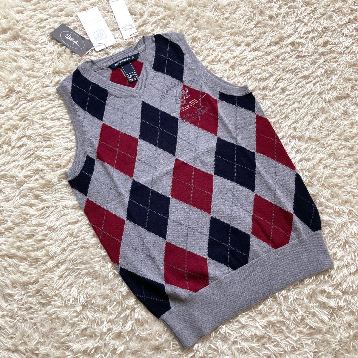 > 新品 未使用 ZOY ゾーイ アーガイル柄 ニットベスト グレー 紺 赤 レディースS ゴルフ 女性 秋冬 冬物 防寒 えんじ色 ワインレッド