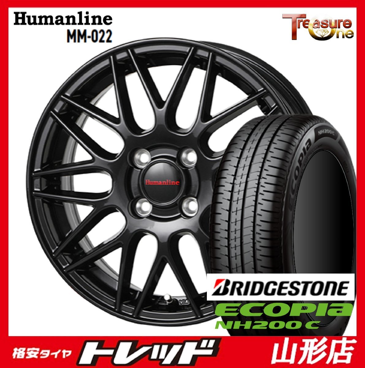 - 数量限定 山形店 新品タイヤホイールセット ヒューマンラインMM-022 13インチ4.0j 4H100 +45 BK ブリヂストン NH200C 155/65R13 2022年製