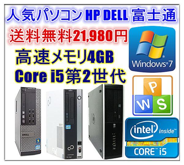 - 中古パソコン Windows 7 Pro 64bit Office付 人気 NEC HP DELL 富士通 第二世代Core i5 2400-3.10GHz〜 メモリ4G HD250GB DVD
