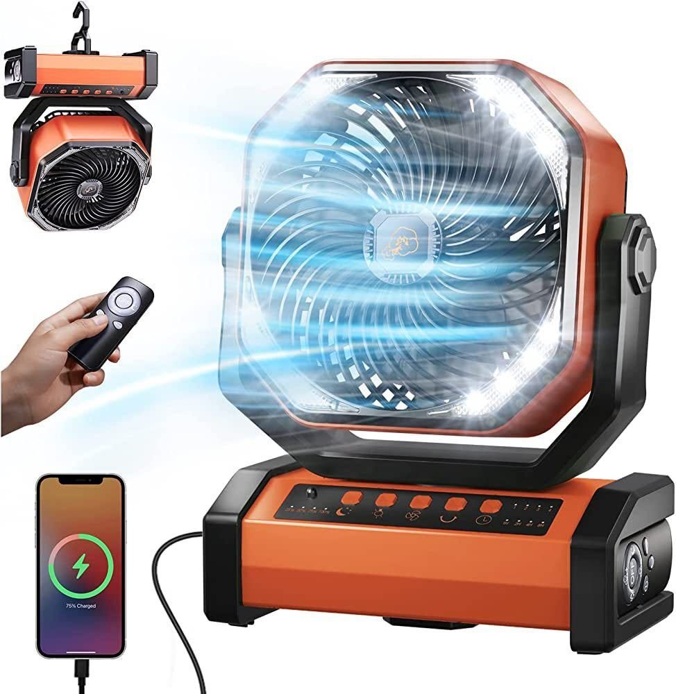 - キャンプ 扇風機 20000mAh大容量 最大60時間連続使用 Type-C充電式 吊り下げ タイマー機能 自動首振りリモコン付き 風量4段階調節
