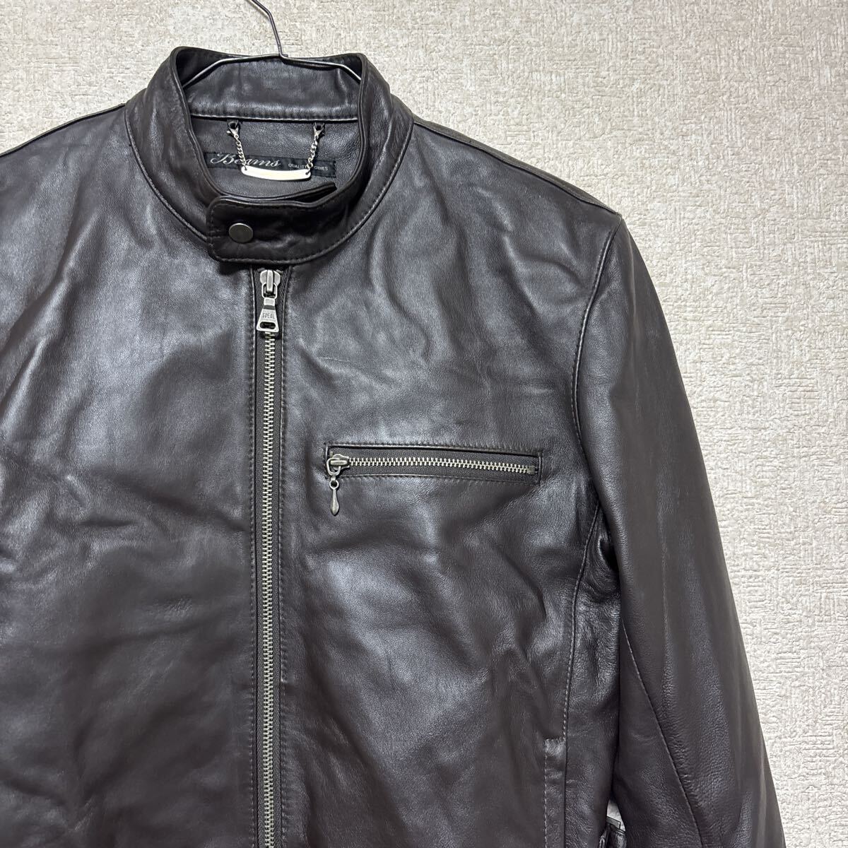 - 【ダブルジッパー】 BEAMS ビームス 羊革 SHEEPSKIN シングルライダースジャケット こげ茶 レディースS レザージャケット 革ジャン