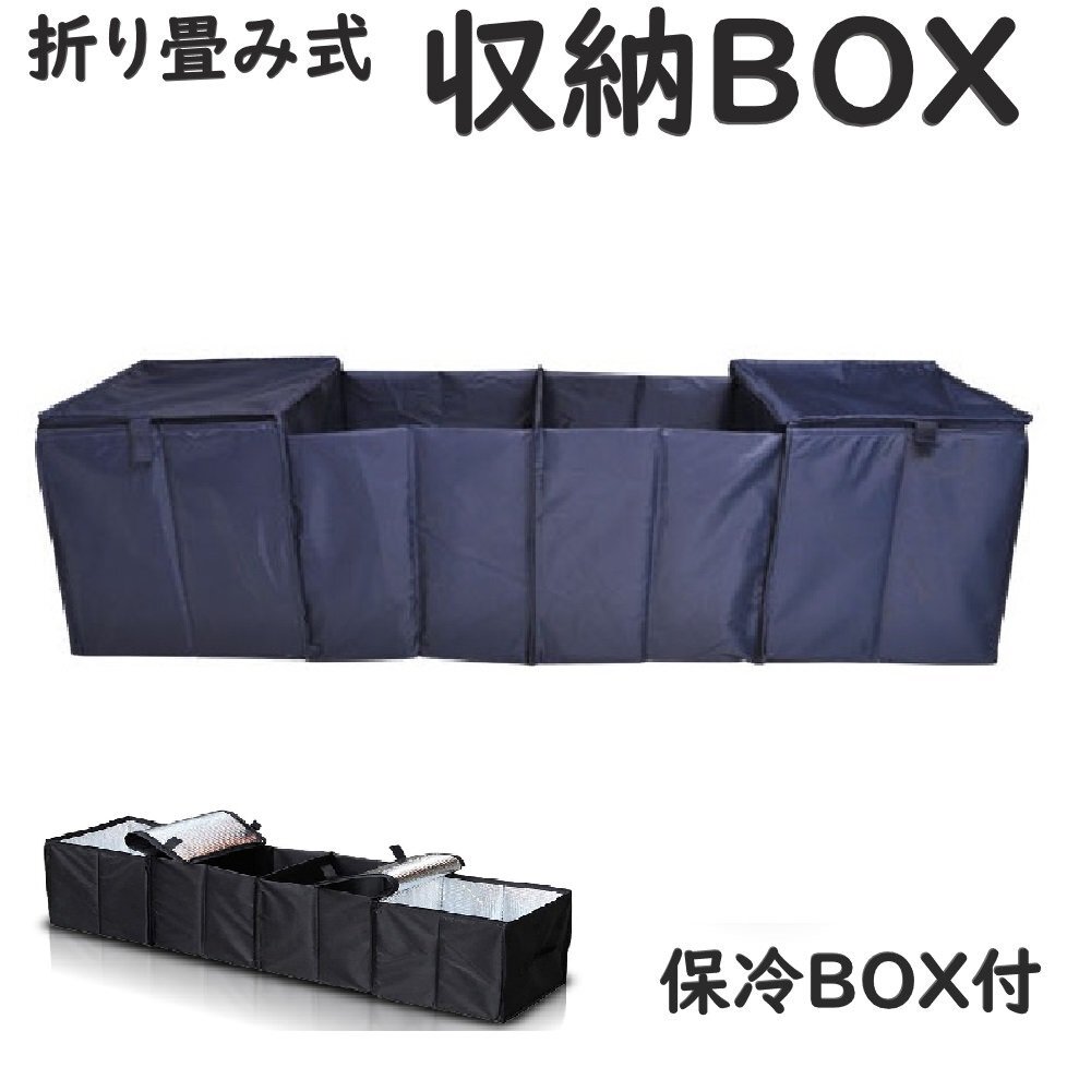 - 車載用 収納ボックス ネイビー 保冷スペース 折畳み式 フタ付 防水 滑り止め トランクボックス 収納 レジャー 車中泊