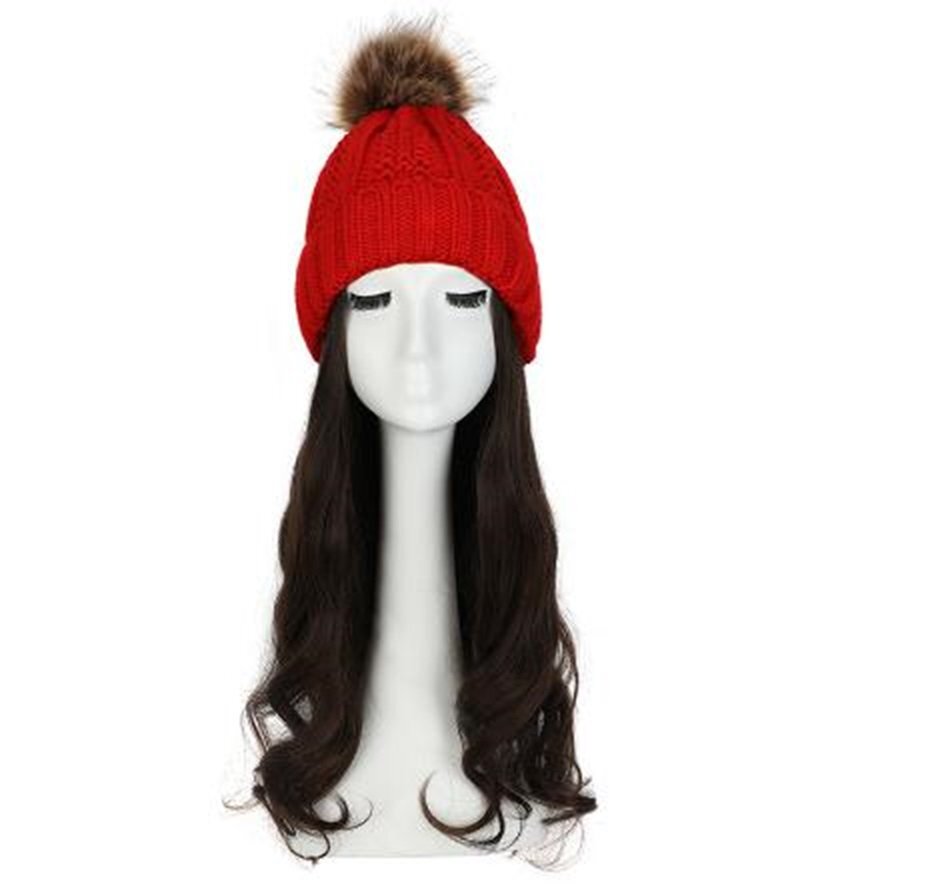 - ウィッグ付きニット帽 ニット帽/レッド ウィッグカラー/K ロングヘアー イメチェン 髪色チェンジ コスプレ