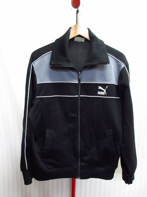 - プーマ 80sヴィンテージ ジャージトップ メンズO XL LL 黒 ロゴ刺繍トラックジャケット トラックトップ スポーツブルゾン PUMA 11062