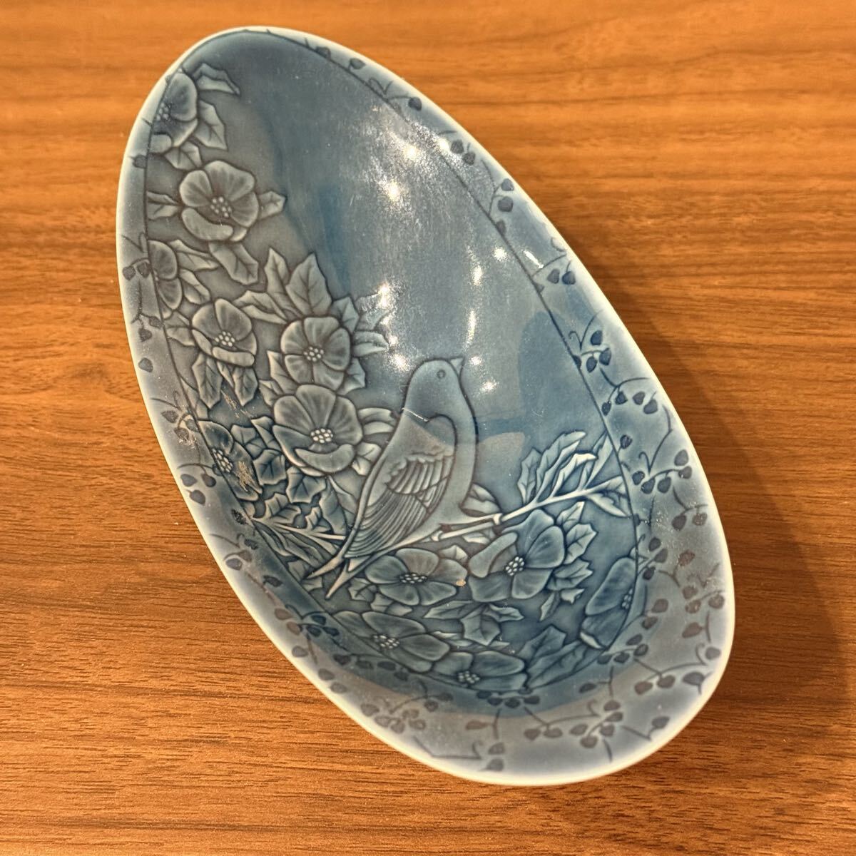 > *fufu* リヤドロ LLADRO ガーデン・アペリティフ ボウル 18cm 鳥と花模様 小物入れ 小鉢 青 ao 皿