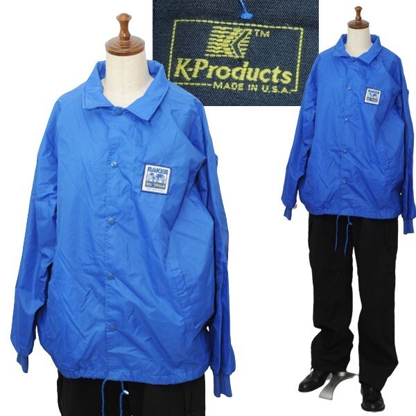 > ★【80s USA製 定番ながらも中々見つからないデザイン】ビンテージ K-PRODUCTS 企業物 ナイロン コーチ ジャケット ブルゾン L ブルー USED